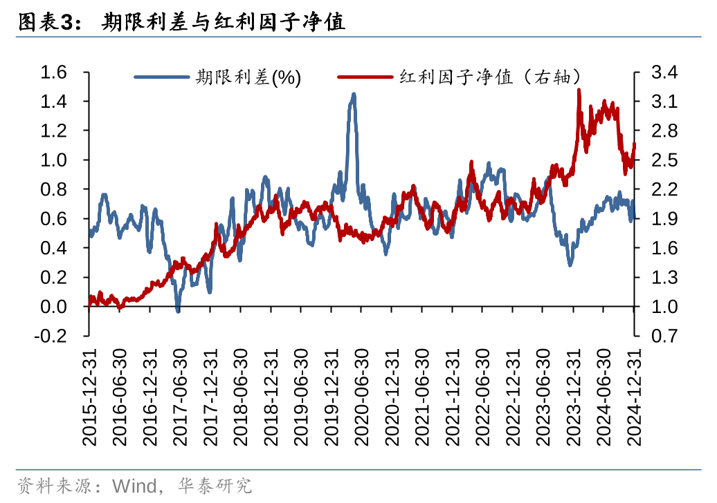 基于全球典型的股票、利率、商品、外汇的同比序列,我们构建了全球经济周期模型。2025Q1全球经济周期模型或拐头进入防守区间,在不同风格的A股资产中,红利类资产的防守属性相对较强,因此我们建议进一步提高其在A股配置中的占比。根据历史经验,在经济周期防守区间内,美国等发达国家的需求或减弱,内需有望成为中国经济发力点,国内流动性环境或继续维持宽松。加上国内宏观因子见底回升尚需时日,利率还有一定的下行空间,红利类资产因其高股息率性价比凸显。