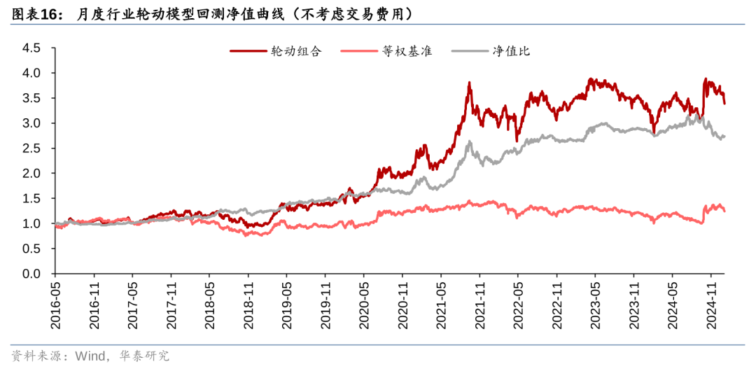 2024Q4月度行业轮动模型跑输行业等权基准6.91%