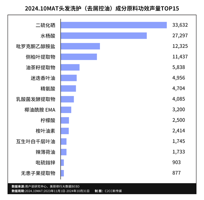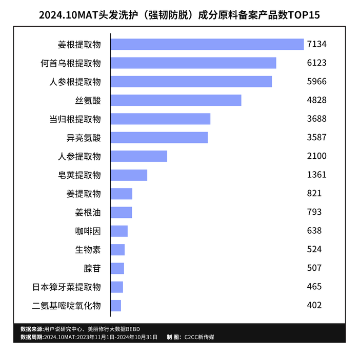 头皮护理、控油去屑的高增长、高需求也在2024.10MAT头发洗护品类成分备案数据被验证。