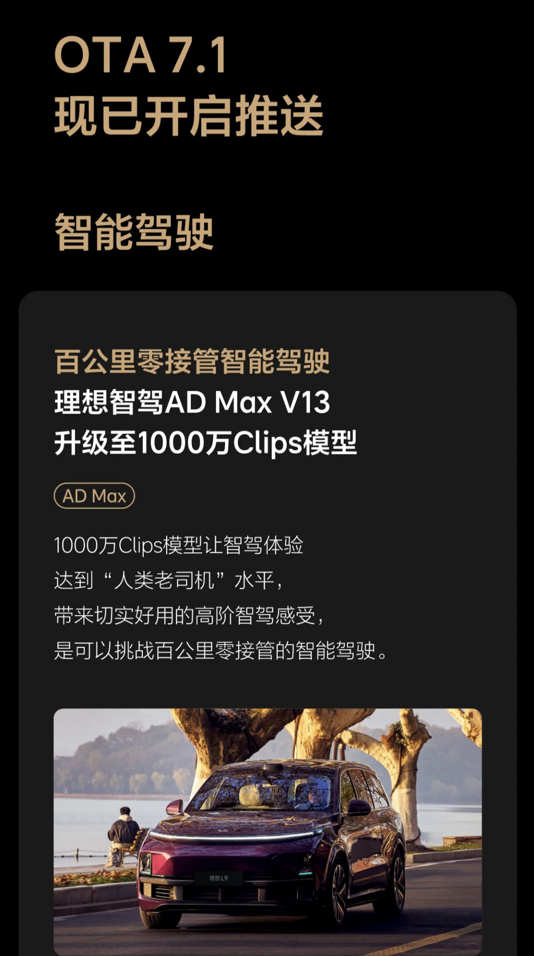 最近理想又推送了新的智驾版本,AD Max V13,升级到1000万Clips模型,号称能够到达“人类老司机”的表现,做到百公里零接管。