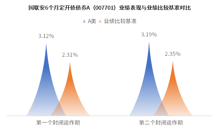 国联安6个月定开债A(007701)自2019.9.6成立以来历经两个封闭期,年化收益率分别为3.12%和3.19%,同期业绩比较基准的年化收益率分别为2.31%和2.35%。收益率曲线平滑,追求稳定向上。(注:第一个封闭运作期为2019年9月6日至2020年3月5日,第二个封闭运作期为2022年12月2日至2023年6月1日。)