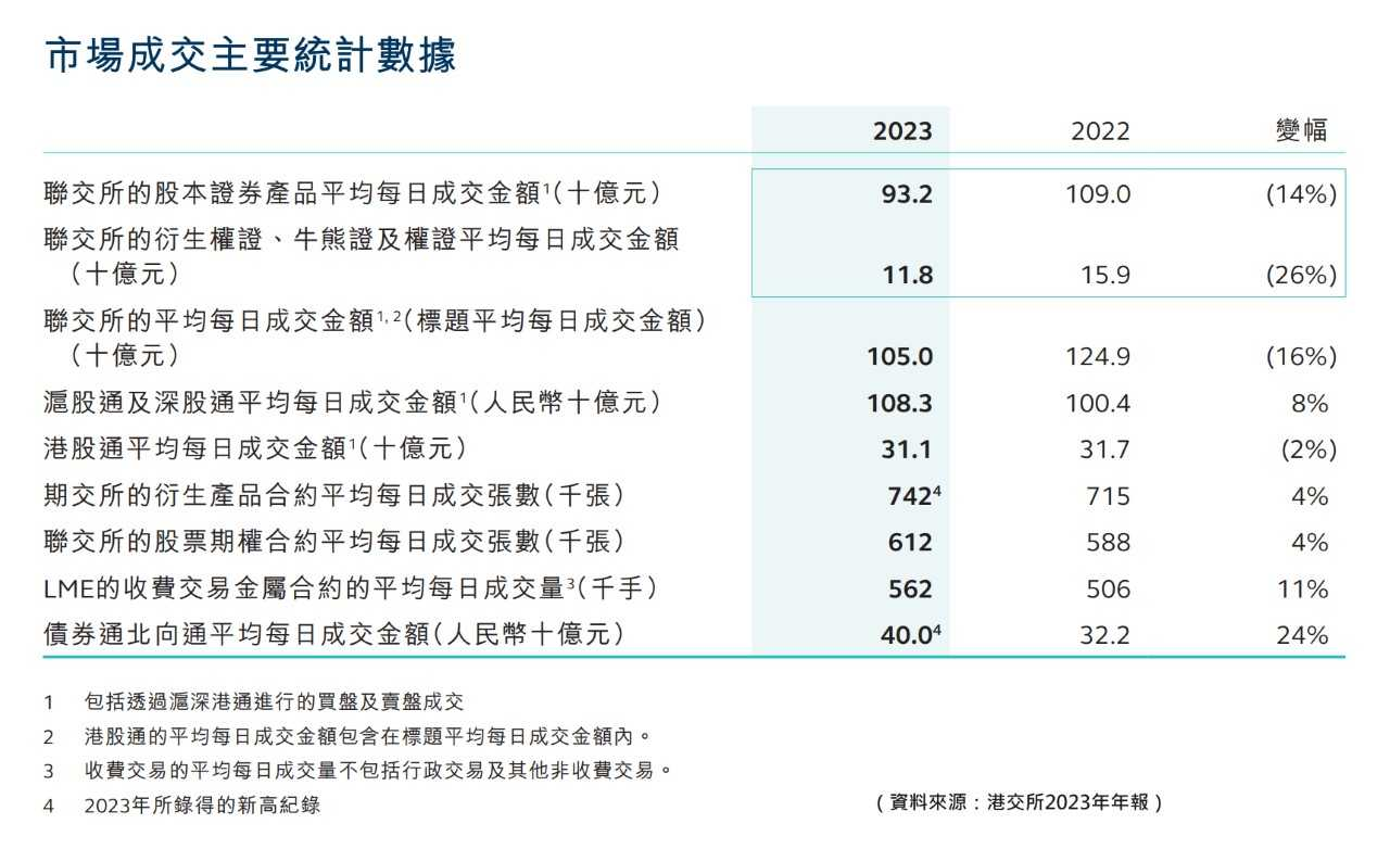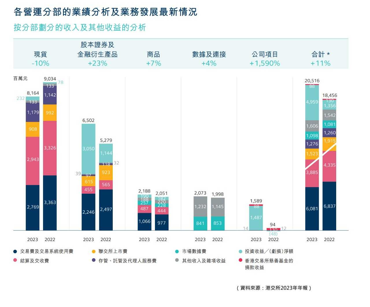 港交所拥有的联交所及期交所,是香港唯一认可的证券及期货市场,虽然拥有海外业务,但主要的收入来源仍是港股,港股每天的成交、新上市公司的多寡及其相关,都是港交所主要收入来源。