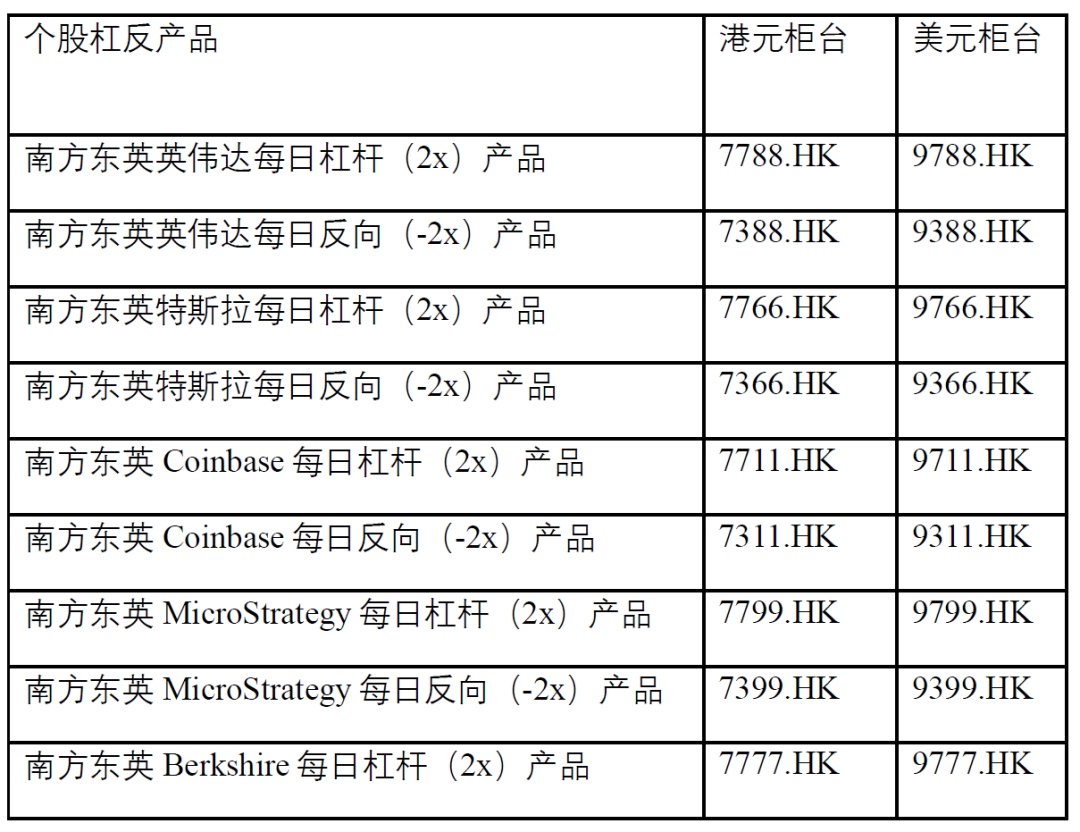 南方东英首席执行官丁晨表示:“南方东英致力于提供多样化的投资产品,杠反产品是其中重要的组成部分。新的个股杠反产品提供了捕捉美国热门股票短期波动的机会。”