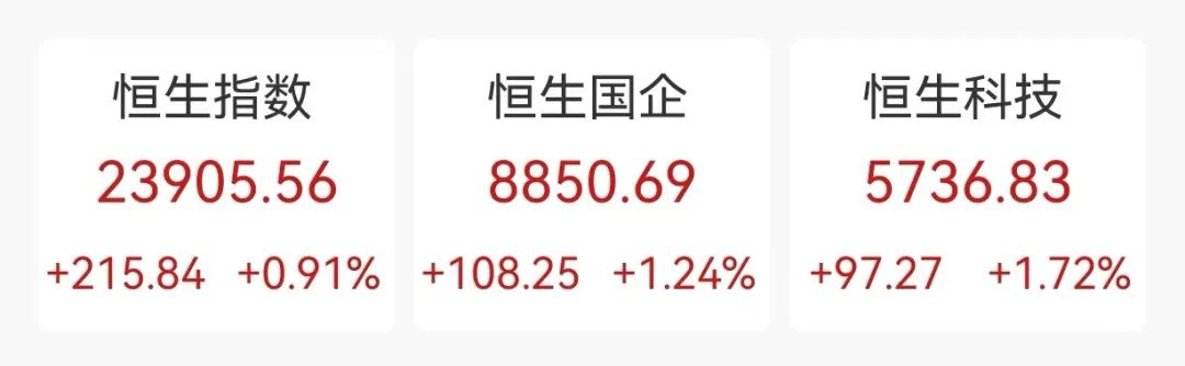 3月24日,香港恒生指数涨0.91%,报23905.56点;恒生科技指数涨1.72%,报5736.83点;恒生中国企业指数涨1.24%,报8850.69点。全天大市成交2331.08亿港元,南向资金净买入额为25.32亿港元。
