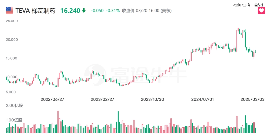 海外资本对生物类似药的市场价值认可,可从梯瓦制药Teva最近一年的走势中看出端倪。Teva在2024年启动日本仿制药业务剥离计划,优化资本配置,聚焦高利润的创新药及生物类似药领域;目前Teva已有曲妥珠单抗、利妥昔单抗以及雷珠单抗3款商业化品种,还手握接近上市阶段的10款生物类似药品种,市场看好这些品种后续助推公司未来的营收。
