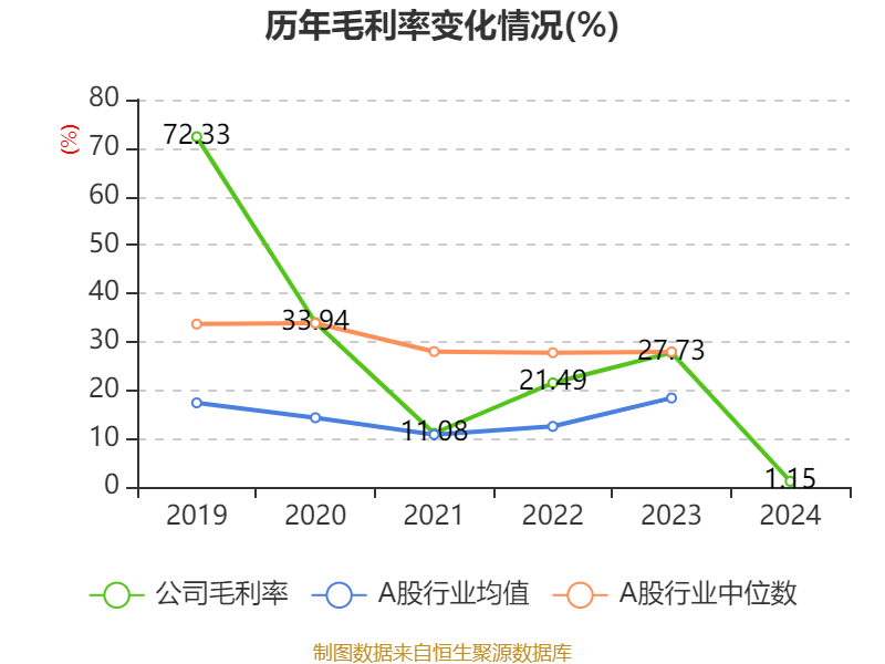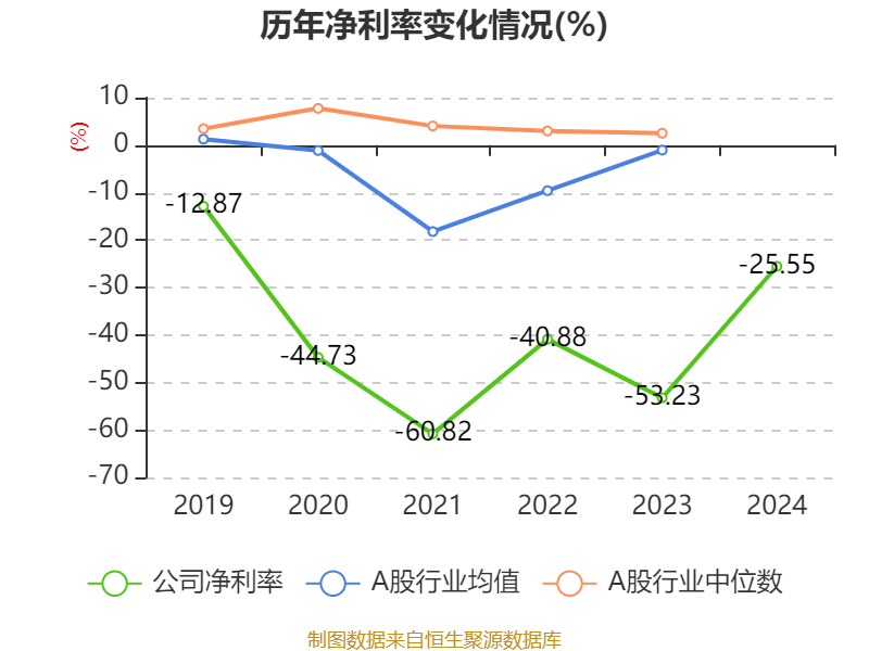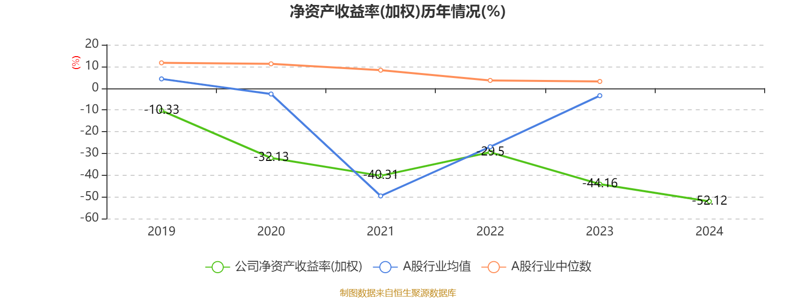 数据显示,2024年公司加权平均净资产收益率为-52.12%,较上年同期下降7.96个百分点。
