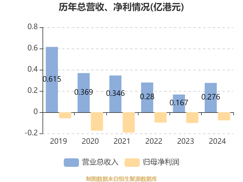 中证智能财讯中彩网通控股(08071)4月3日披露2024年度报告。报告期内,公司实现营业总收入2761.7万港元,同比增长65.7%;归母净利润亏损759.8万港元,上年同期亏损1010.8万港元;经营活动产生的现金流量净额为-904.6万港元,上年同期为-962.2万港元;据报告显示,中彩网通控股基本每股收益为-0.0016港元,加权平均净资产收益率为-52.12%。