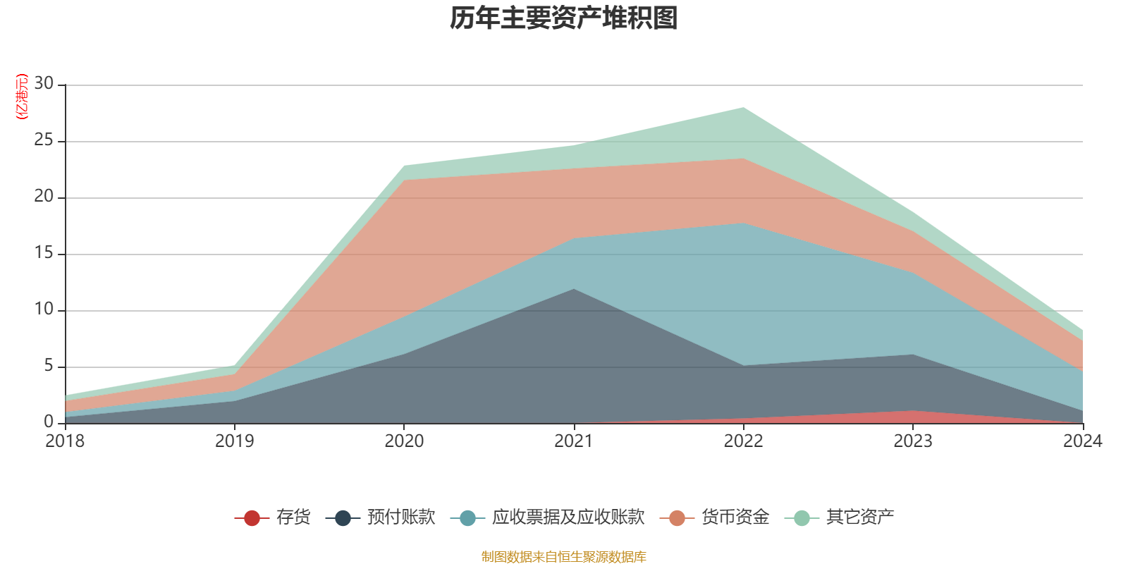 资产重大变化方面,截至2024年末,公司预付账款较上期末减少78.29%,占公司总资产比重下降13.54个百分点;货币资金较上期末减少25.98%,占公司总资产比重上升13.44个百分点;存货较上期末减少100%,占公司总资产比重下降5.82个百分点;应收票据及应收账款较上期末减少52.11%,占公司总资产比重上升3.43个百分点。