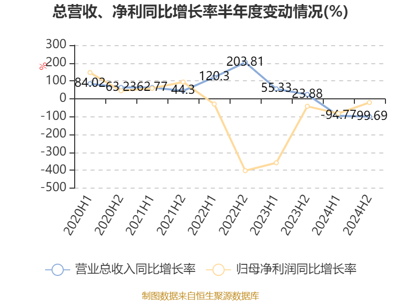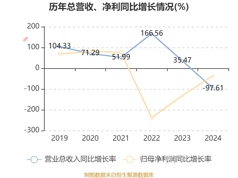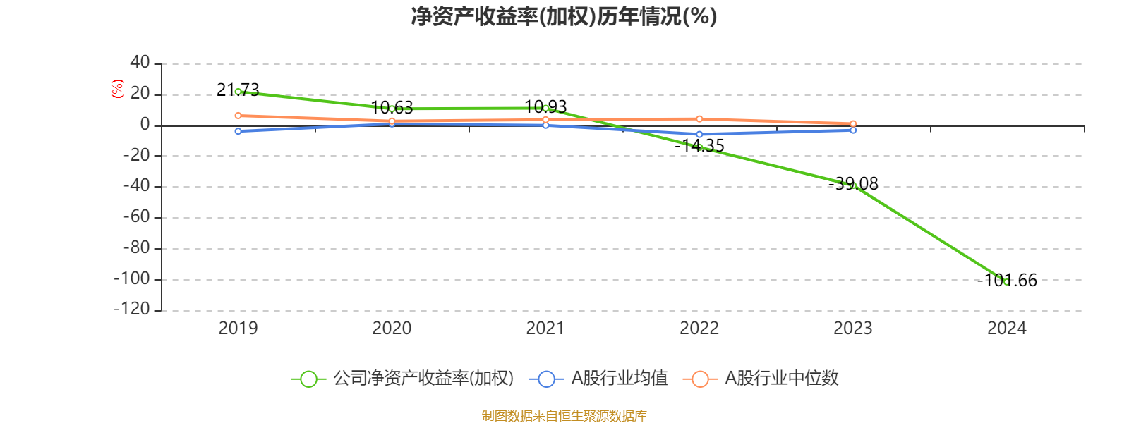 数据显示,2024年公司加权平均净资产收益率为-101.66%,较上年同期下降62.58个百分点。