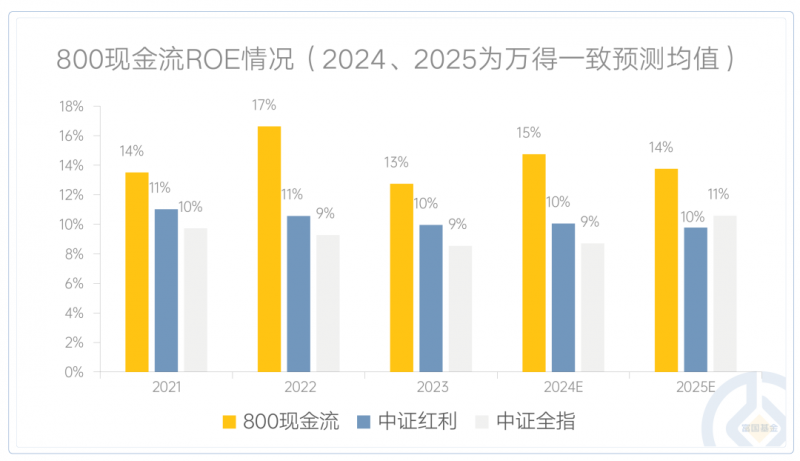 更不容忽视的是,800现金流的历史盈利和分红能力稳定。截至3月17日,800现金流ROE稳定在15%,高于同期中证红利和中证全指等指数。此外,股息率同样处于较高水平,约4.8%。