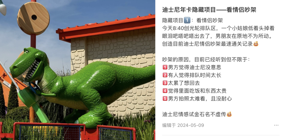 而如今,在这个本应是世界上最快乐的地方,想要扇人的游客可说是摩肩接踵了。“看情侣吵架”甚至成为了上海迪士尼的隐藏项目。