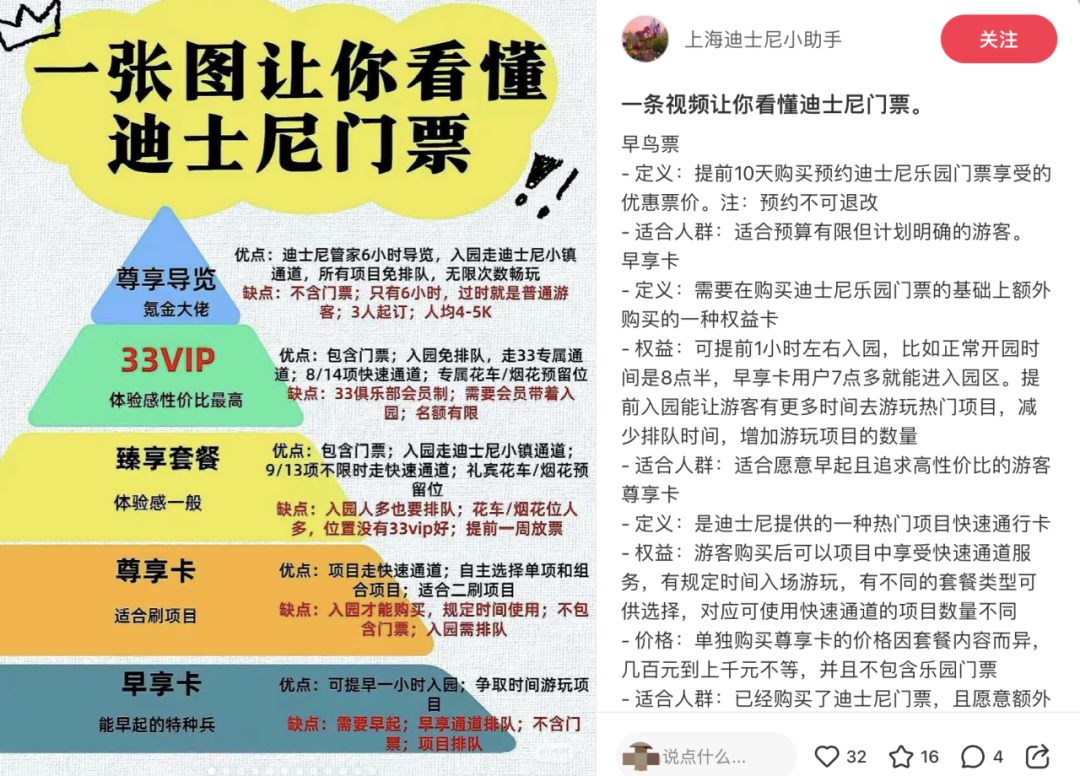 这还不包括各种增值服务。根据不同的需求,迪士尼还有不同的票型,每个票型对应的服务不同,价格也就不同。