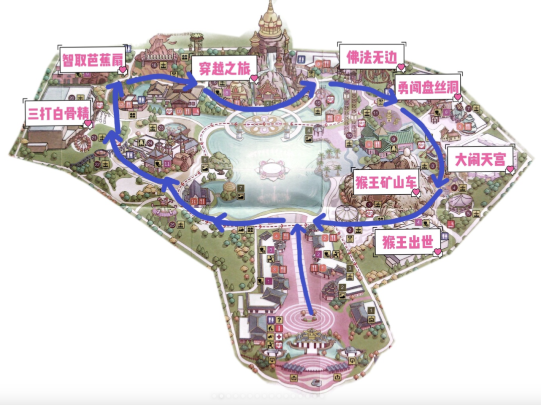 入园后游客可以去拿一份“通关文牒”,然后随着游乐项目一一打卡。光是“通关文牒”这个概念,就会比在游乐园里没头苍蝇似的乱走要有趣得多。