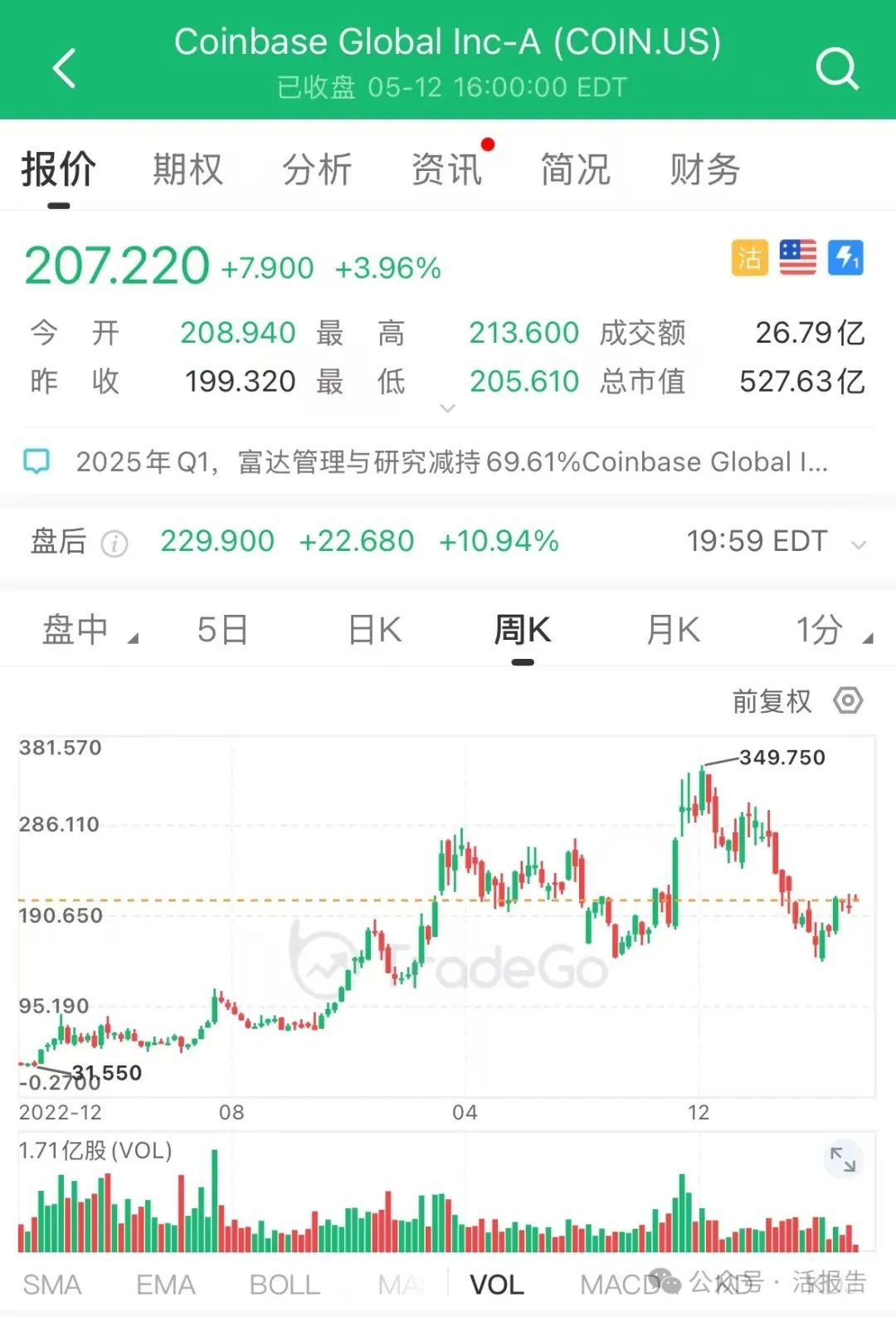 受此影响,Coinbase于5月13日美股盘前大涨超10%。作为近四年来首家通过直接上市在交易所上市的美国主要加密公司,Coinbase的股价在过去两年中上涨了约260%,最新市值达到约为530亿美元。