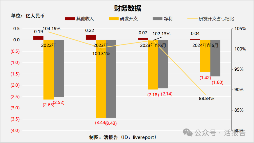 公司是处于注册临床阶段的生物制药公司。2023年收入为118.1万元,净亏损为3.4亿元,研发开支占比100.31%。