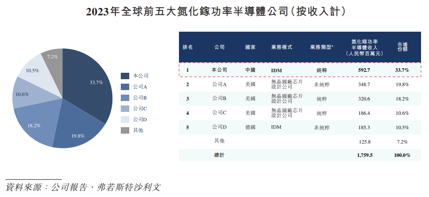 其中,中国企业英诺赛科(2577.HK)以一己之力打破国外垄断,并牢牢占据全球榜首,市场份额高达33.7%。