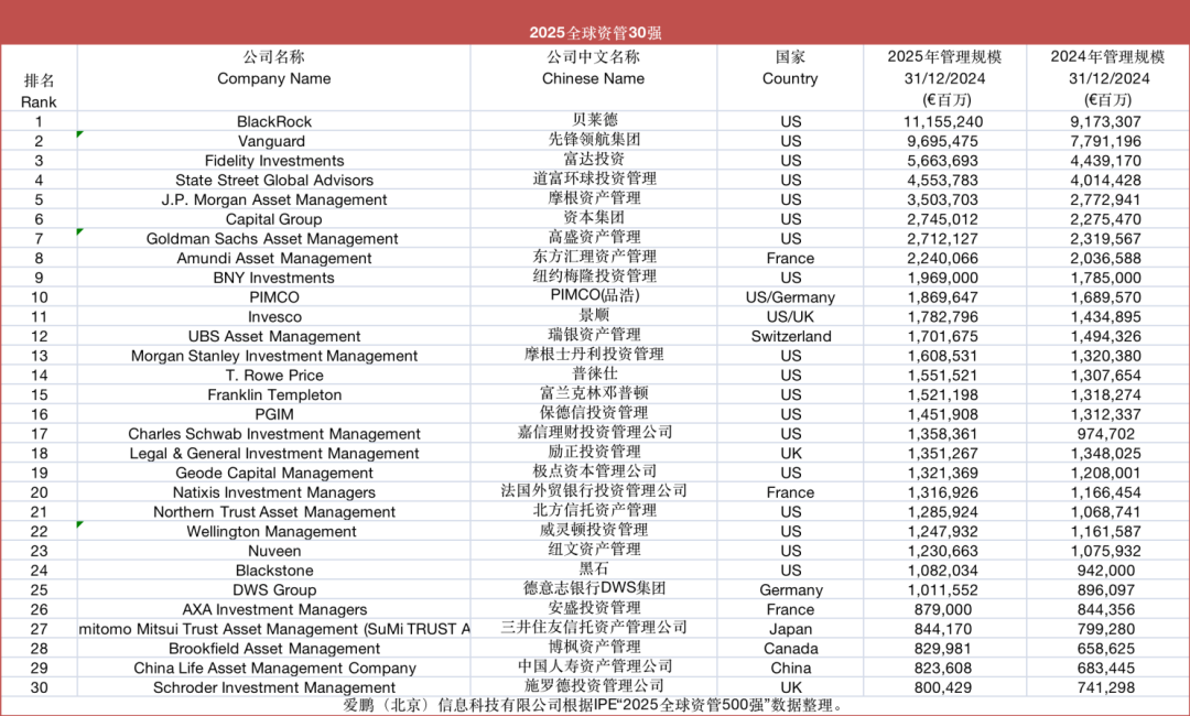 【导读】IPE发布“2025全球资管500强”,9家中国机构入榜,国寿资产跻身30强