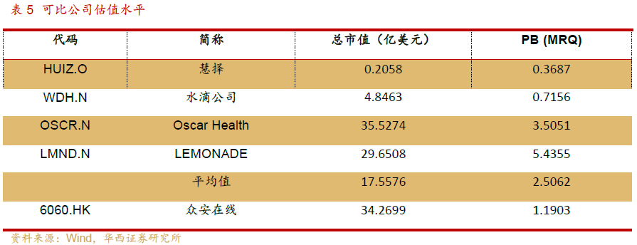 考虑到公司健康生态产品矩阵持续丰富,主打产品保费收入有望延续高增;数字生态持续拓展宠物险、碎屏险、无人机险、家财险等创新业务,保费有望保持快速增长;消费金融生态随着宏观环境修复,或有望恢复正增长;汽车生态业务在交强险资质拓展下保费有望继续高增。我们预计2025-2027年保费服务收入增速分别为11%/14%/14%。综合来看,我们预计2025-2027年营业总收入分别为37.15/39.18/41.43亿元;2025-2027年归母净利润分别为9.04/10.11/12.21亿元,对应EPS分别为0.62/0.69/0.83元。众安在线2025年6月16日收盘价20.60港元/股(按6月16日汇率1 HKD=0.9146 CYN)对应PB为1.26x/1.19x/1.12x,首次覆盖,给予“增持”评级。