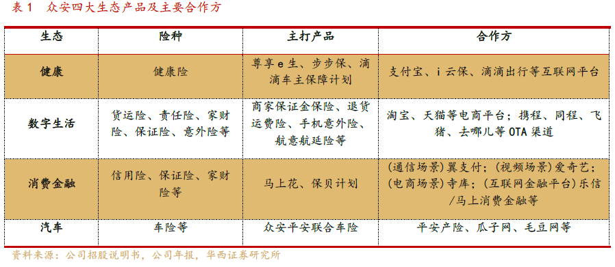 以“保险+科技”为双引擎,从退货运费险逐步向健康险、车险延伸。初期聚焦生活消费,2013年与阿里巴巴合作在其淘宝及天猫推出退货运费险和商家保证金保险。2014年退货运费险占总保费的比例高达77.2%。2014年推出手机意外险,为手机屏幕及其他损毁提供保险。产品布局逐步向医疗健康延伸,2015-2016年推出个人健康险产品“尊享e生”等,带动2017年健康险保费收入同比+357.8%。2015年与平安保险合作推出商业车险产品"保骉车险"(现更名为“众安平安联合车险”),截至2017年9月获批全国所有地区投放;公司汽车生态保费收入从2016年的370万元快速增长至2017年的7890万元。2024年公司成功拓展交强险业务,获批上海、浙江两地的交强险经营资质,将为汽车生态保费规模提供新增长动力。