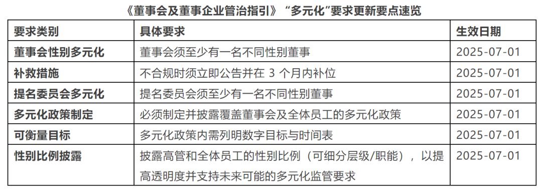 董事会多元化:明确要求董事会中至少包含一名不同性别的董事,打破以往单一性别主导的局面。