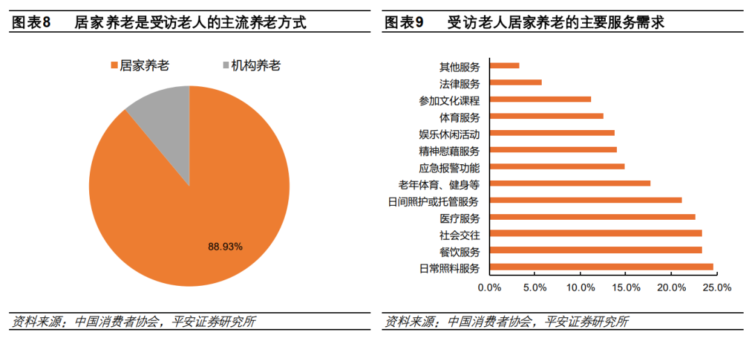 为积极应对,政府提出“9073”的应对策略,即90%居家养老、7%社区养老、3%机构养老。在这样的格局下,依托物业的社区康养服务需求呈爆发性增长。