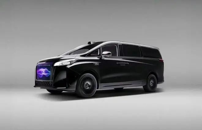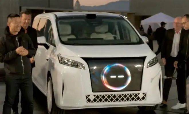 如图所示,这款概念车有着传统 MPV 的身形,但前脸中网部分并未采用散热格栅设计,而是一整块 LED 显示屏,FF 称之为“Super EAI F.A.C.E.设计”,其中 F.A.C.E 是指 Front AI Communication Ecosystem。