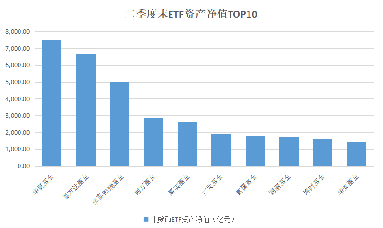 ETF市场的“马太效应”在此背景下持续凸显。截至二季度末,国内非货币ETF总规模达4.15万亿元,而管理规模超千亿元的机构仅10家,却占据了80.05%的市场份额。头部机构的领先并非偶然,而是源于对赛道的深度耕耘与生态壁垒的构建。
