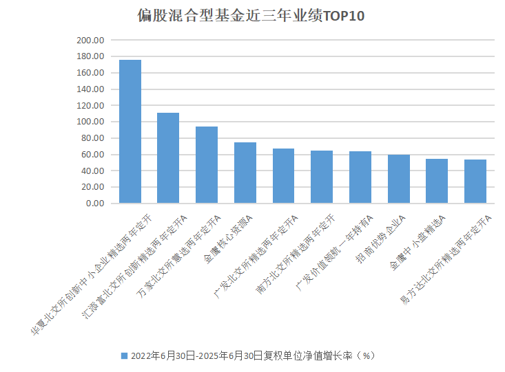 其中,华夏北交所创新中小企业精选两年定开基金的表现尤为瞩目。截至二季度末,该基金近三年回报率达175.64%,不仅斩获“偏股混合型基金”与“周期制造基金”双料冠军,更以72.16%的上半年净值增速跻身全市场(除QDII)前三。