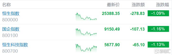 7月25日,连续上涨的港股三大指数迎来调整,恒生指数、国企指数均止步5连涨行情,分别收跌1.09%及1.16%,恒生科技指数跌1.13%,三大指数近日连创阶段新高后明显表现弱势。
