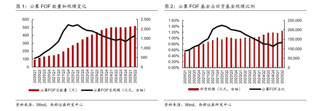 公募FOF基金规模占非货基金规模比例为0.83%,较上季度上升0.02pct,延续25Q1以来的上涨趋势。