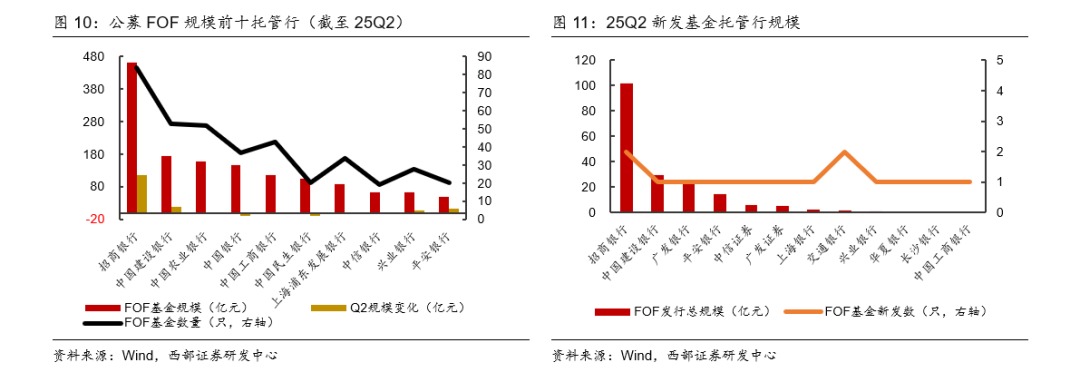 2季度新发基金托管中,招商银行规模第一。2季度新发14只公募FOF基金的托管行中,招商银行以101.98亿元托管规模位居首位,新发2只基金。交通银行新发2只基金,其余托管行均新发1只基金。