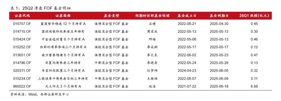 25Q2规模增长基金共239只,占比46.59%。如剔除新发基金,2季度规模实现增长的FOF基金共计225只,占比45.36%。规模增长较显著的是,博时臻选楚汇三个月持有、东方红盈丰稳健配置6个月持有,分别增长73.66亿元、65.73亿元。25Q2有6只基金规模增长超10亿元,有9只基金规模增长超5亿元。