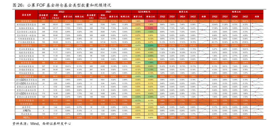 主要逻辑三:分析FOF基金25Q2对各类型基金配置情况和边际变化