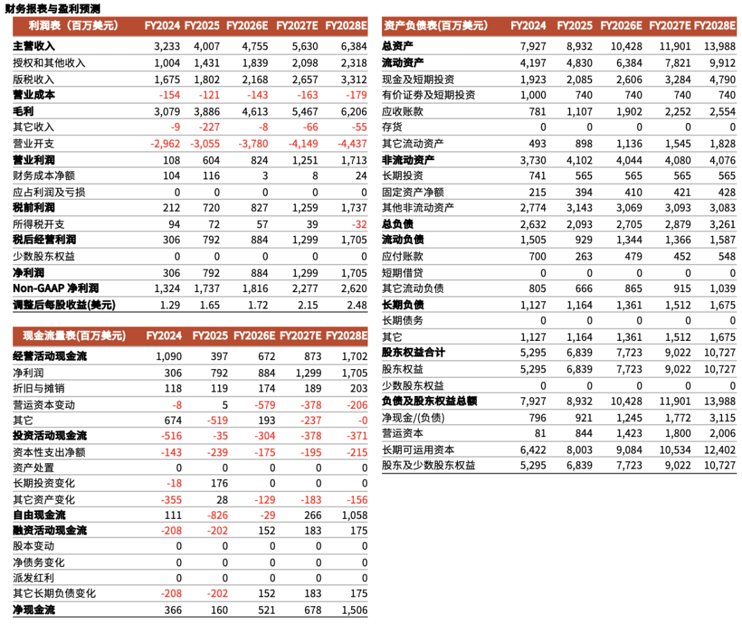 授权业务:节奏波动影响ATA和AFA签订,ACV增长保障未来授权收入。FY26Q1授权收入4.68亿美元,YoY-0.8%,系高价值授权协议交付时点及积压订单节奏波动影响。FY26Q1新签署1项ATA协议、累计达45家,前30大客户ATA渗透率超50%;AFA协议累计313家,环比减少1家。FY26Q1年化合同价值(ACV)15.28亿美元,YoY+28%,除CSS新增合作外,SoftBank围绕Grace Blackwell芯片带来高额定制授权收入,成为增量主力;剩余履约义务(RPO) 22.32亿美元,环比持平,新签协议对冲前几个季度的收入确认。