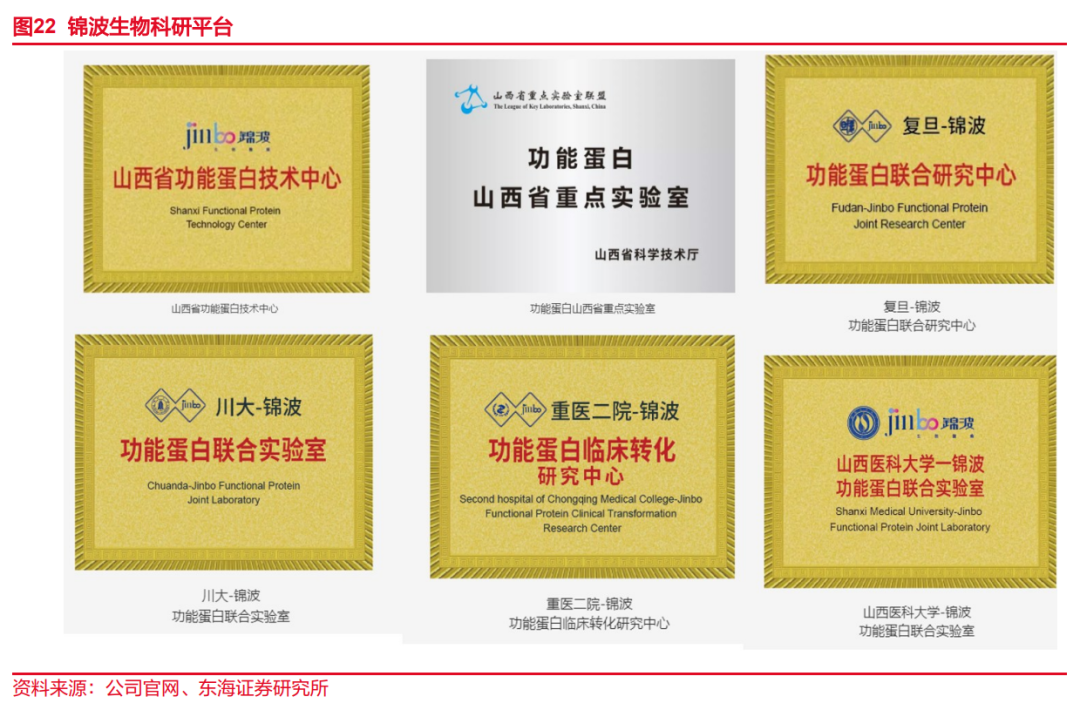 研发实力方面,1)公司以自主研发为主,同时结合产学研合作开发,建立了六大核心技术平台。公司与高校、医院等长期保持合作,建设有山西省功能蛋白技术中心、复旦-锦波功能蛋白联合研究中心、功能蛋白山西省重点实验室、川大-锦波功能蛋白联合实验室、重医二院-锦波功能蛋白临床转化研究中心等多个科研机构,涉及基础研究、临床研究、产业化研究等多个领域,推进不同类型胶原蛋白的空间结构及功能位点解析,为后续产品研发及产业化生产等奠定基础。2)研发团队专业。截至2024年底,公司研发团队人数达212人,占总员工人数的25.76%,硕士及以上学历占比达40%。同时,公司聘请四川大学张兴栋院士为生物材料首席科学顾问、聘请复旦大学姜世勃教授为首席科学家,带领公司团队创新研发。公司研发团队及外聘专家为公司的研发工作带来了良好的理论与实践基础。截至2024年底,公司拥有104项专利,其中发明专利70项。