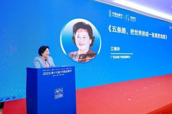 本届品牌节的主题是“AI 与出海”。主论坛上,广西金嗓子集团董事长江佩珍以《“AI”为帆,大“爱”为舵:金嗓子的出海破局之路》分享了金嗓子从破局到立势,从跃迁到共勉的突围之路。