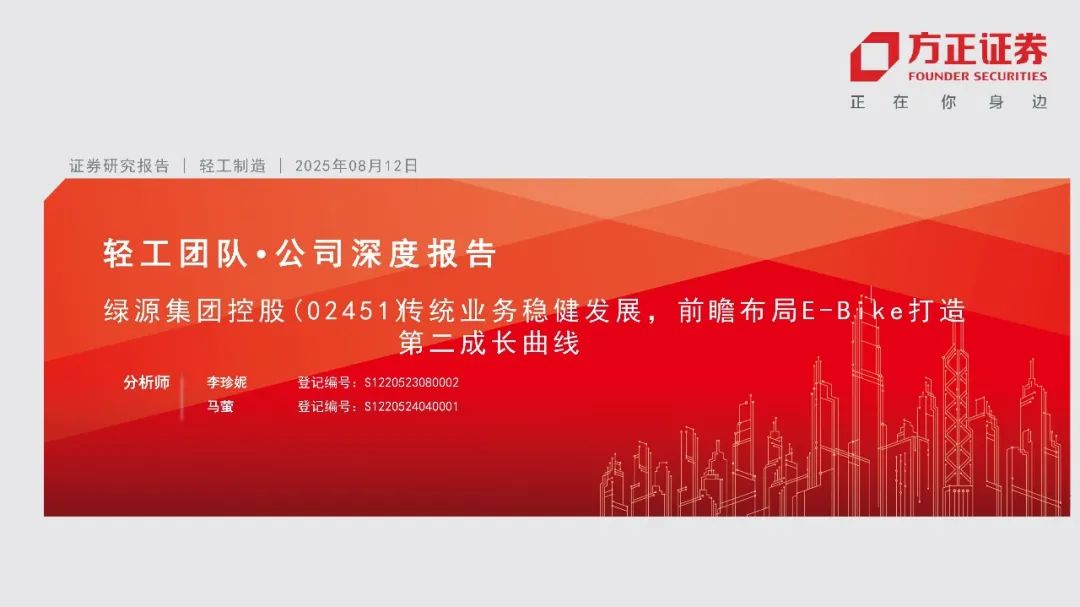 本文来自方正证券研究所于2025年8月12日发布的报告《绿源集团控股(02451):传统业务稳健发展,前瞻布局E-Bike打造第二成长曲线》,欲了解具体内容,请阅读报告原文。
