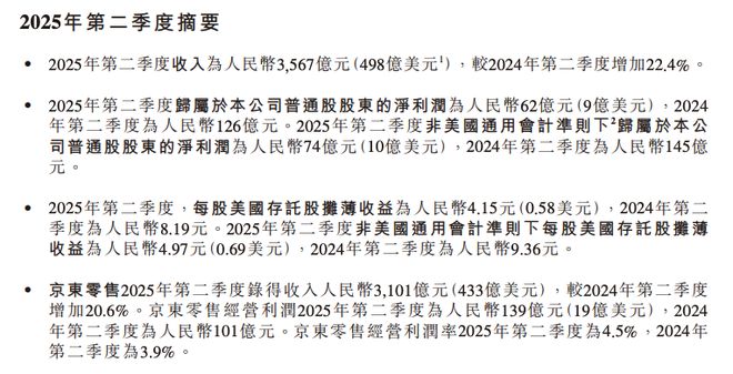 二季度,京东集团收入3567亿元人民币,同比增长22.4%。