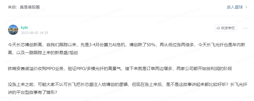 在港股里,我们近期也挖掘到像长飞光纤,近期也有一倍的表现,而现在市场卖方还没搞懂在交易什么。