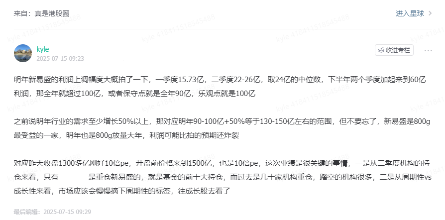 比如,自跟踪新易盛以来涨幅已超230%,即使是在5-6月份的一大段上涨后,我们也提示到目前市场还尚未修复到该有的估值。