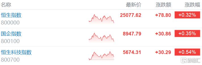 8月29日,港股三大指数集体收涨,且止步3连跌行情。截至收盘,恒生指数涨0.32%重上25000点上方,国企指数、恒生科技指数分别上涨0.35%及0.54%。