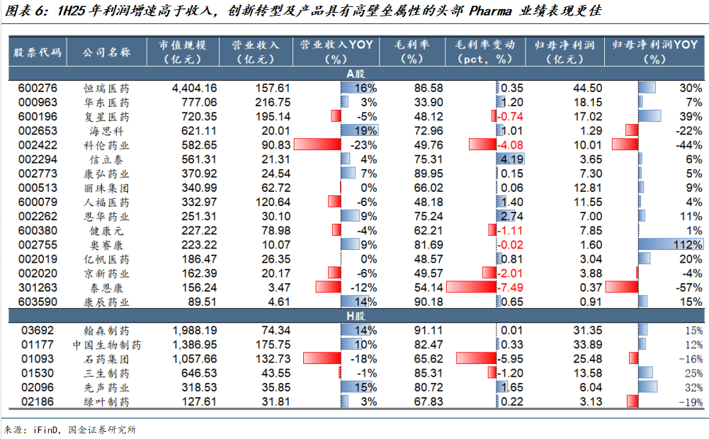 重点个股分析——Pharma:业绩分化,创新转型进度靠前的大型企业表现较好