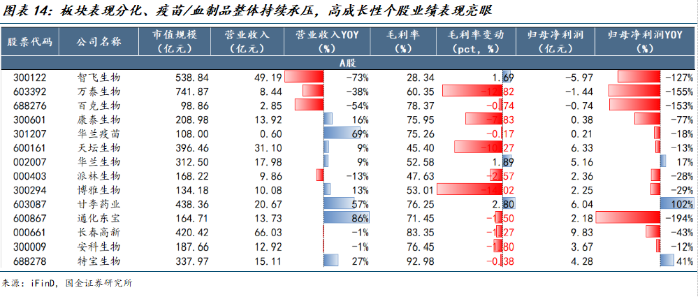 生物制品:板块表现分化,疫苗、血制品板块持续承压