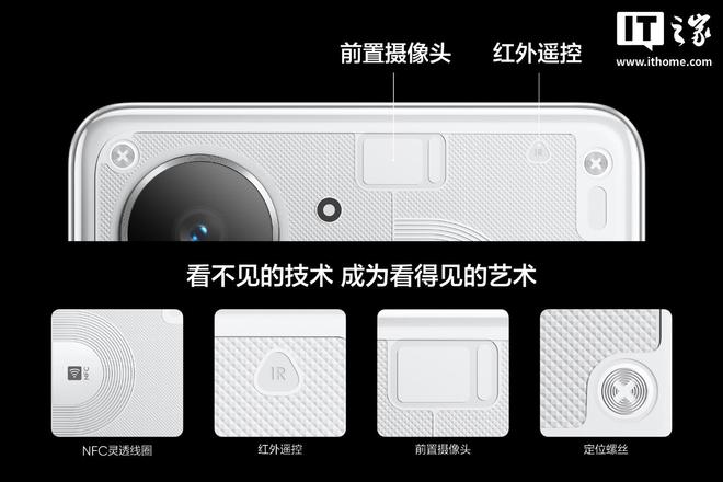 真我 Neo7 Turbo 采用“透明新生设计”,共有“透明黑”“透明灰”两款配色,近乎 1:1 还原内部结构,还有 NFC 灵透线圈、背板晶刻纹理、闪能 DART 标。