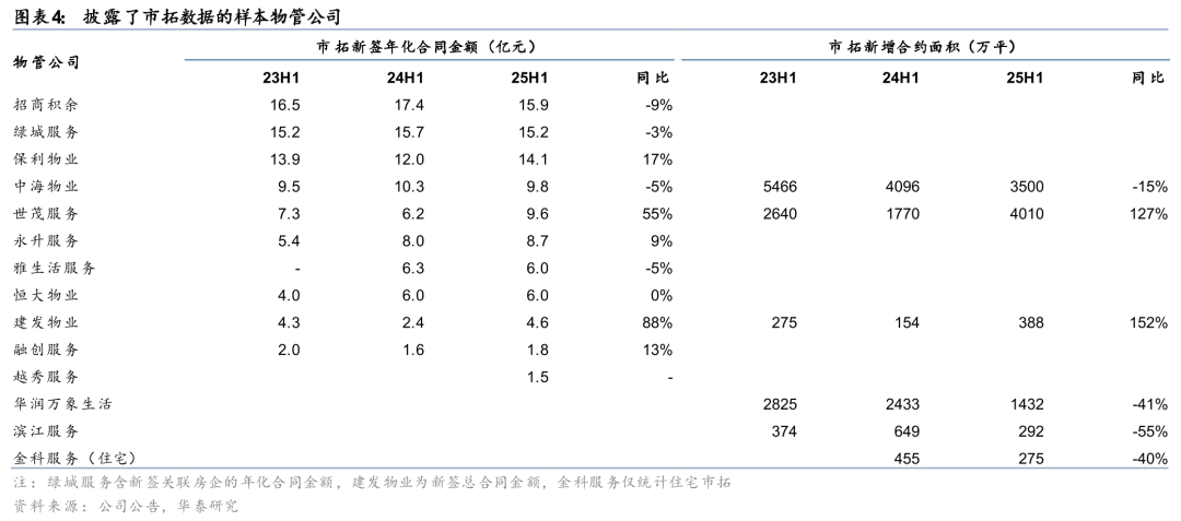 25H1样本物管公司在管面积扩张速度延续小幅放缓的趋势,主要因为:1、房地产市场调整导致住宅项目交付减少;2、受房地产和经济环境的共同影响,高质量的市场化拓展空间有所收窄,而物管公司在关联房企销售和收并购承压后普遍加强了市拓力度,供需结构变化导致市拓竞争依然激烈;3、物管公司普遍提升市拓准入门槛,重点聚焦核心城市的优质项目,不合理的低价竞争、垫资竞争有所减少;4、物管公司继续退出低盈利、低回款或非重点城市的零散项目,包括部分存在降价压力、交付质量较差的项目,部分项目受甲方后勤战略收缩的影响停止续约;5、物管公司对于收并购的态度依然谨慎。