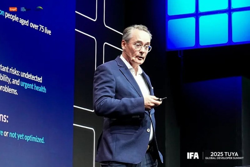 Groupe Prolaser总经理Edouard Blin以《AI驱动的银发经济:非接触式护理让老人生活更长久、更安全》为主题发表演讲。他表示:“随着全球老龄化进程加速,我们致力于通过AI技术提升老年人的尊严与生活质量。通过部署Olinkgo AI雷达和SOS AI智能音箱系统,我们可以对用户的活动状态、生命体征、睡眠及行为模式进行无感监测。这不仅能够早期发现老年人睡眠呼吸暂停、心脏异常等健康问题,还能向护理人员提供实时告警和预防性报告。今后,我们还将与涂鸦继续深化合作,开发更加智慧的银发关怀解决方案和产品,助力长者享有更有尊严、安全、舒适的原居安养生活。”