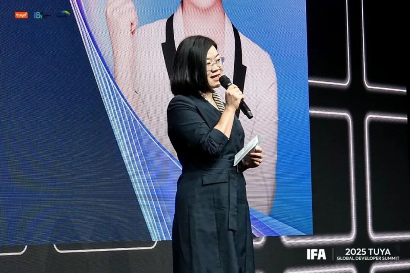 涂鸦智能欧亚大区总经理俞菲进行开场致辞。她表示:“时至今日,AI技术早已成为驱动千行百业智能化转型与创新的核心引擎。作为全球AI云平台,涂鸦始终致力于构建AI生活的超级入口,为开发者提供开放、高效的创新AI解决方案,推动AI技术走向普惠与平权。同时,我们也期待与欧洲本土乃至全球开发者携手,让AI技术融入全球每一个角落。”