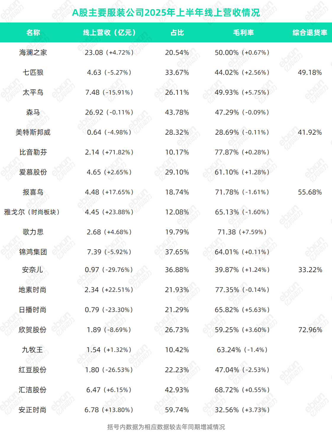 如报喜鸟、海澜之家、比音勒芬等均入驻得物。其中,比音勒芬线上营收2.14亿元,大涨71.82%,规模接近2024全年水平,毛利率高达77.87%,与线下基本持平。比音勒芬、报喜鸟在抖音、天猫、小红书、京东、拼多多、微信小程序等渠道开设10个新门店,报喜鸟和爱慕等布局线上社群营销。