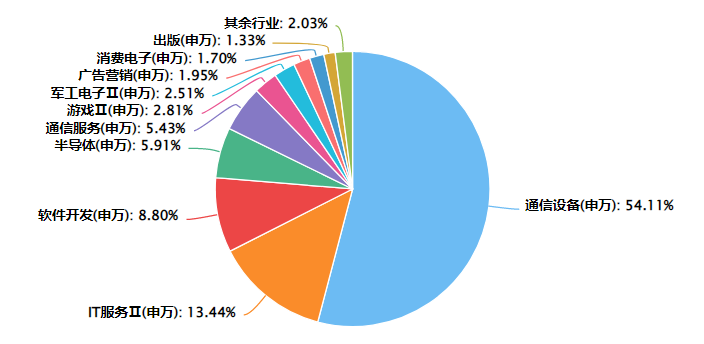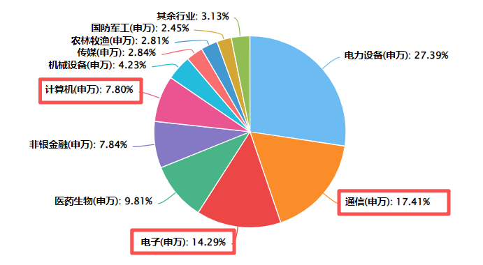 从创业板指的申万一级行业构成看,它的第二大权重行业通信(17.41%)、第三大权重行业电子(14.29%,含半导体芯片),和第六大行业计算机(7.80%),都是和AI强相关的。