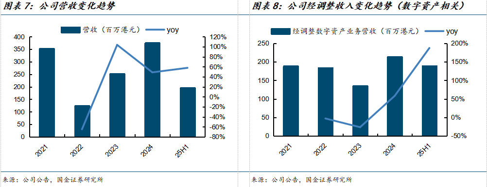25H1,剔除币价影响,数字资产及区块链平台业务实现营收1.89亿港元,yoy+187.3%,主要得益于数字资产交易和机构服务需求增加,叠加公司在欧洲的全球业务拓展。